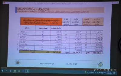 Giorgi Misheladze, the Chairman of the National Agency for Sustainable Land Management and Land Use Monitoring, introduced the details of the program to Irakli Shioshvili, the State Representative of Kakheti Region, and the mayors of the municipalities of the region.